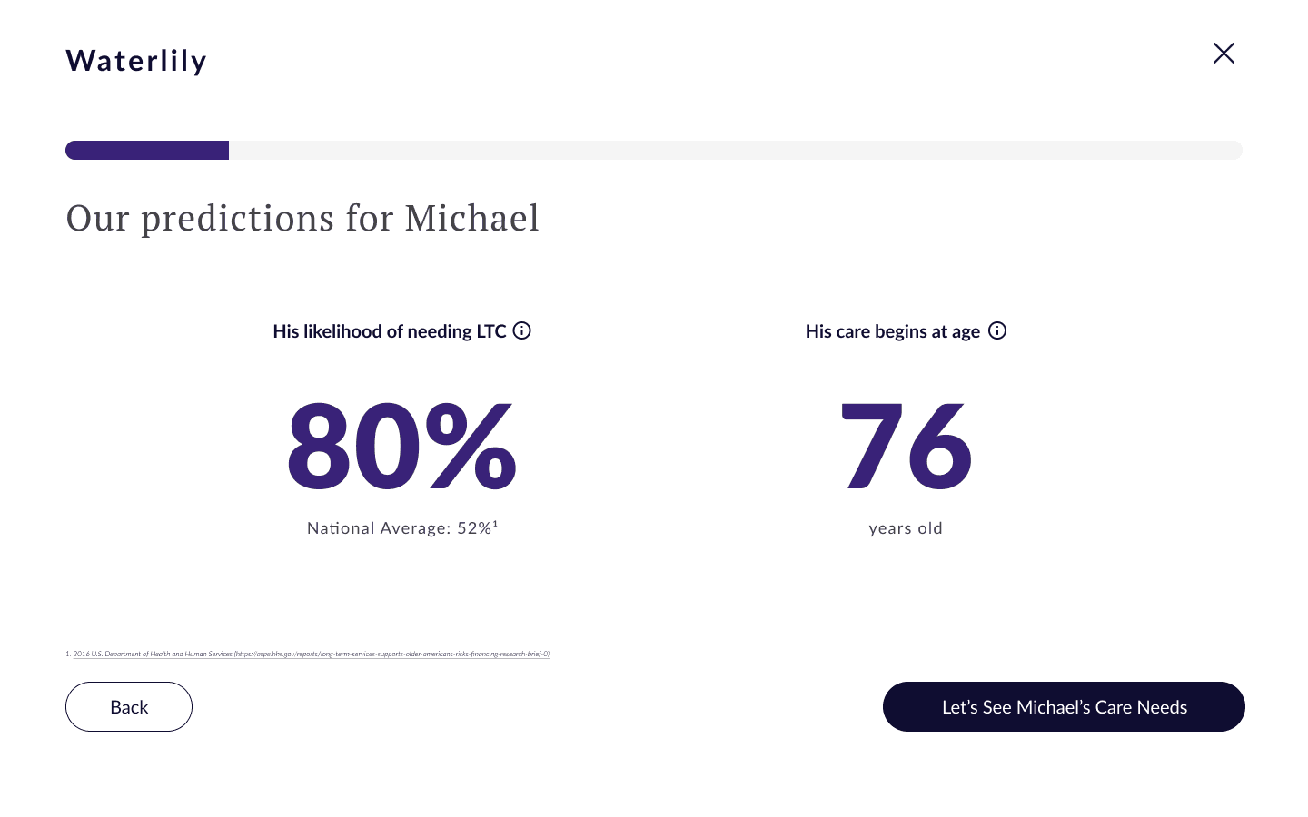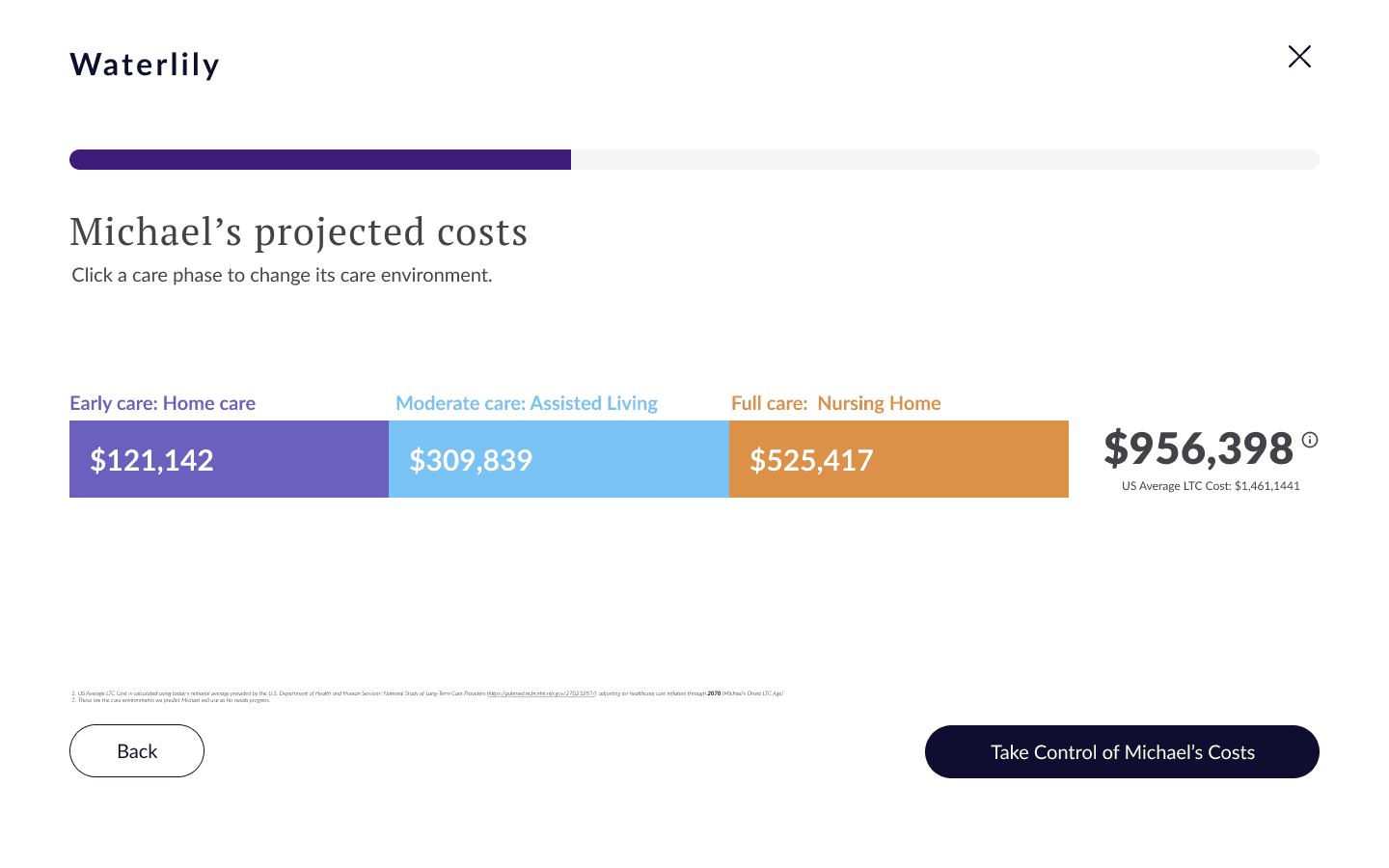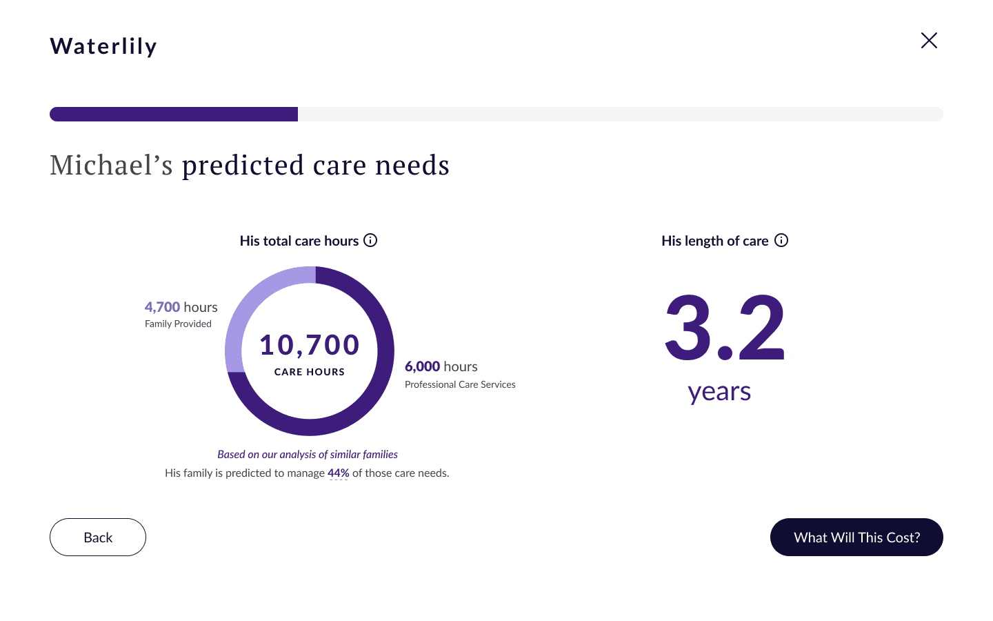 Waterlily's AI projects your clients' personal long term care needs so you can go deeper in planning.