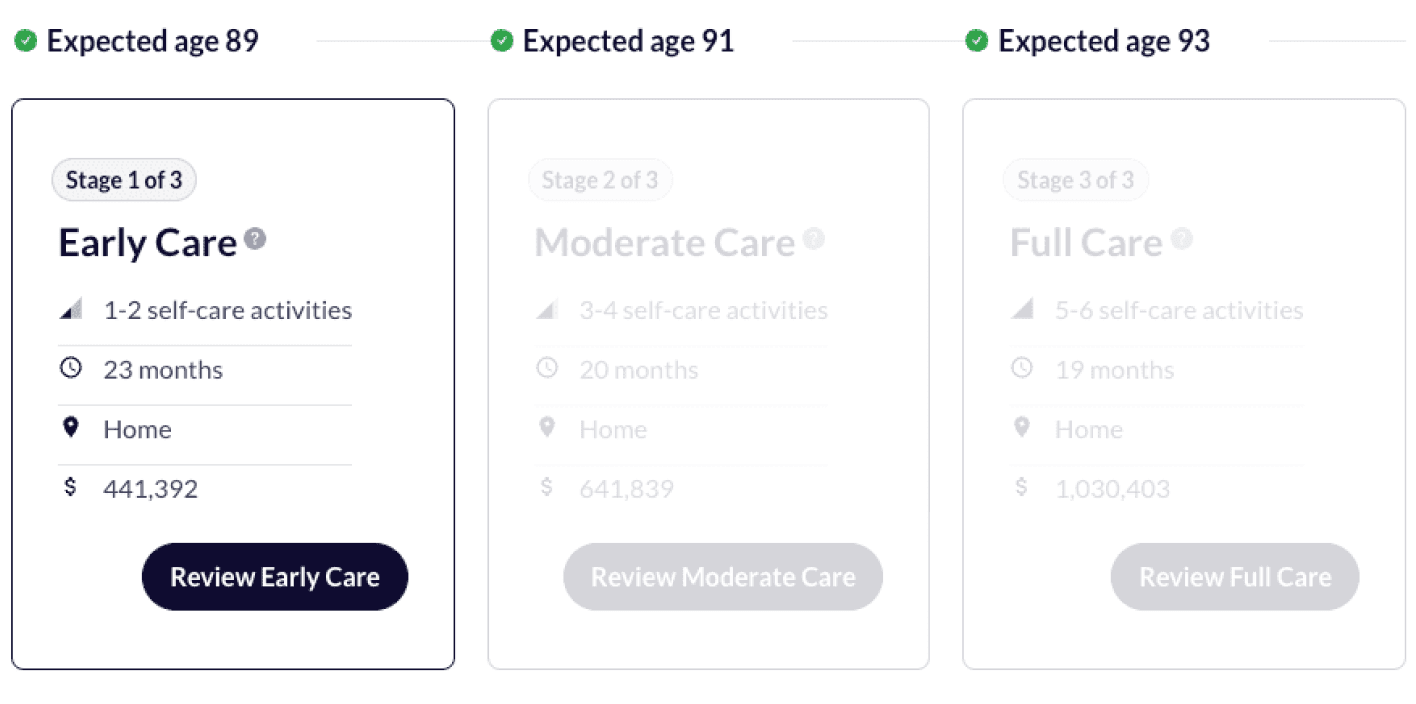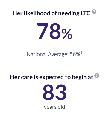 "In just a few minutes, I was able to determine the age at which my care would begin, how long it would last and its cost. The system also provided a funding plan to cover the costs."